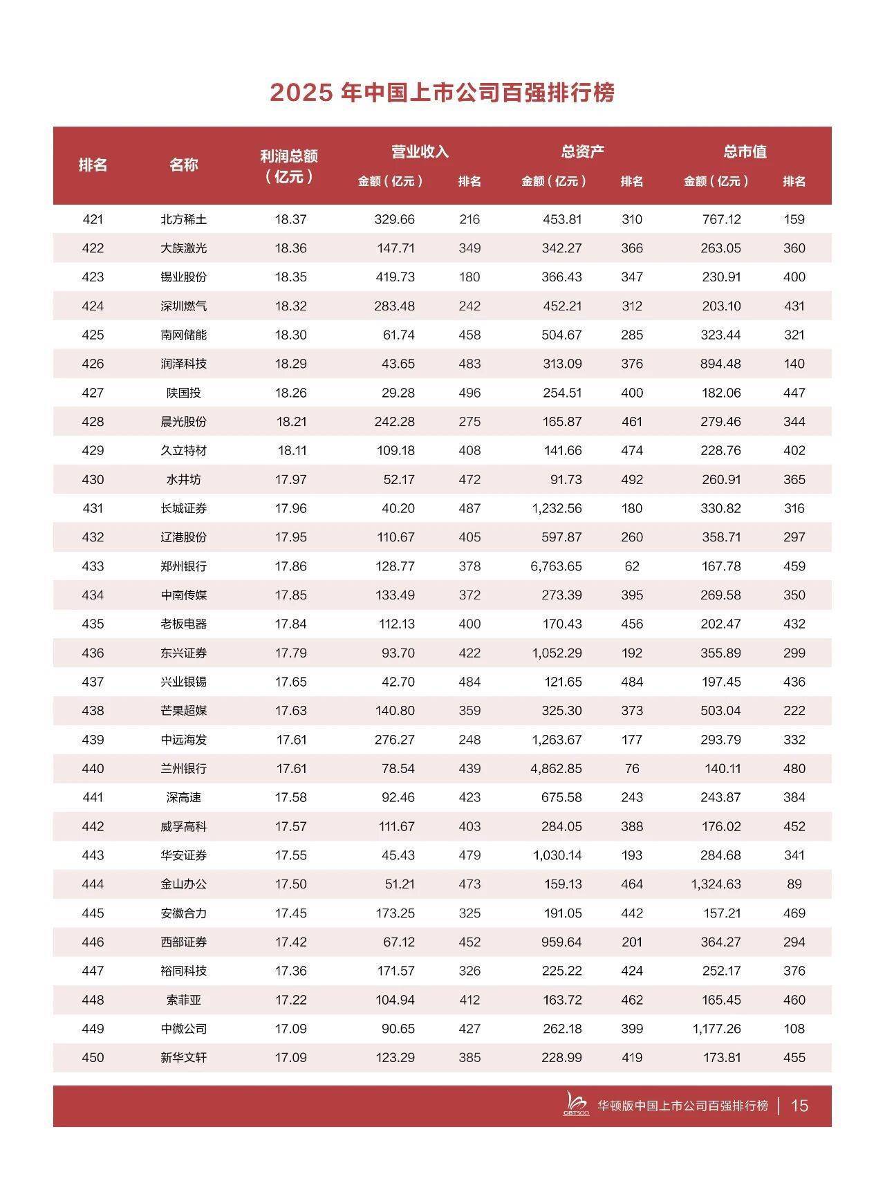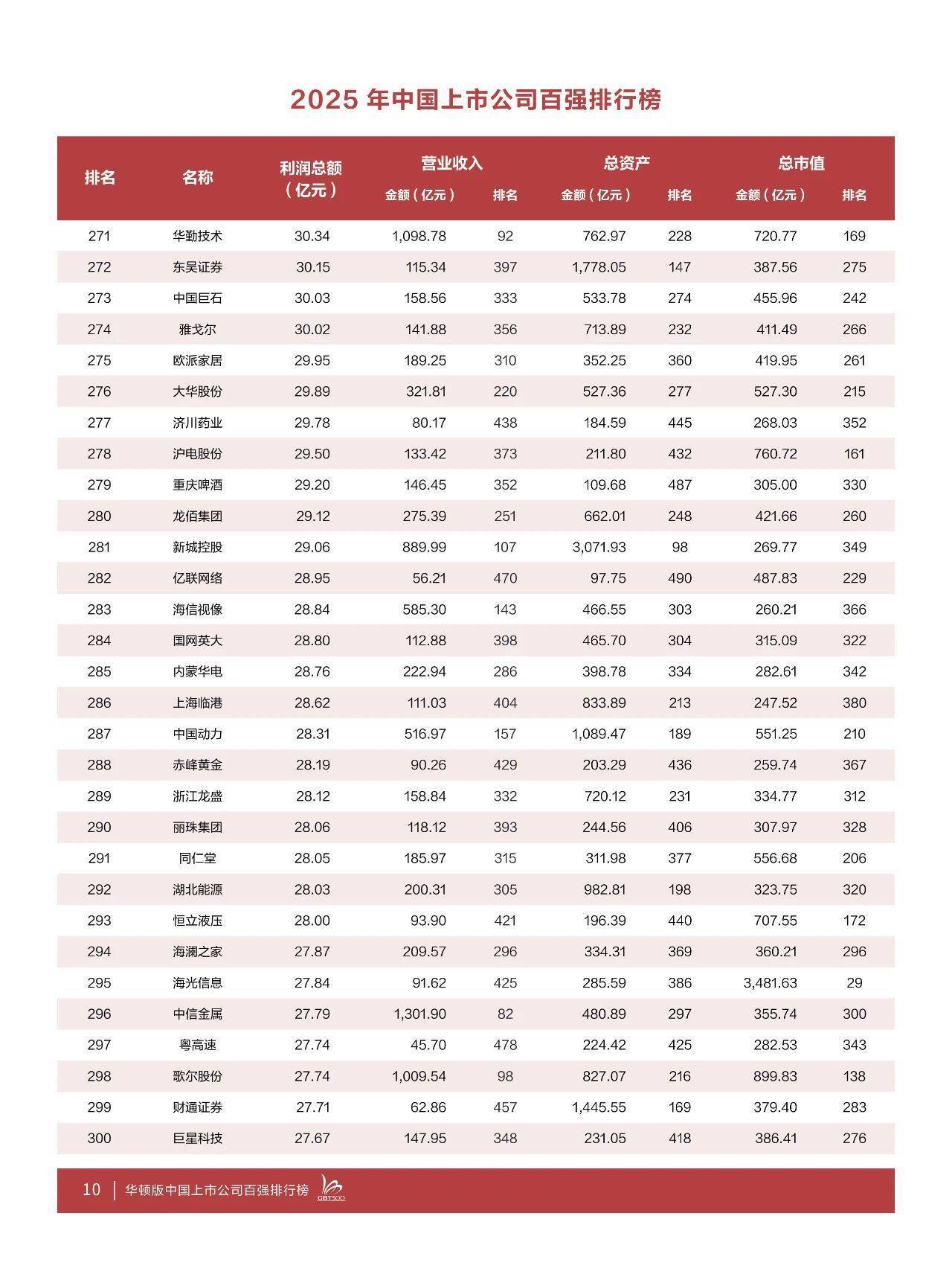 【大河财立方消息】10月18日消息,据中国百强论坛,10月17日,华顿经济研究院在上海发布“2025年中国上市公司百强排行榜”,沪深北全部上市公司中利润总额排名前500位的上市公司上榜。